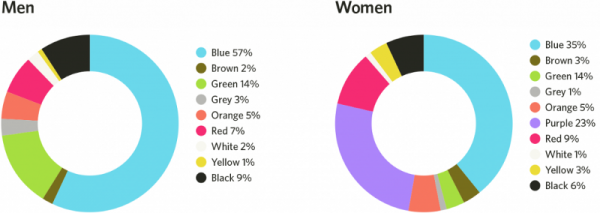 研究調(diào)查發(fā)現(xiàn)絕大多數(shù)人最喜歡的顏色就是藍(lán)色,它被認(rèn)為是全球范圍內(nèi)最安全的設(shè)計(jì)用色(研究數(shù)據(jù)如下圖所示)。